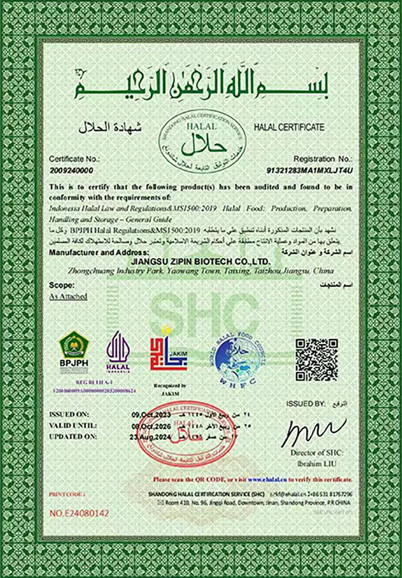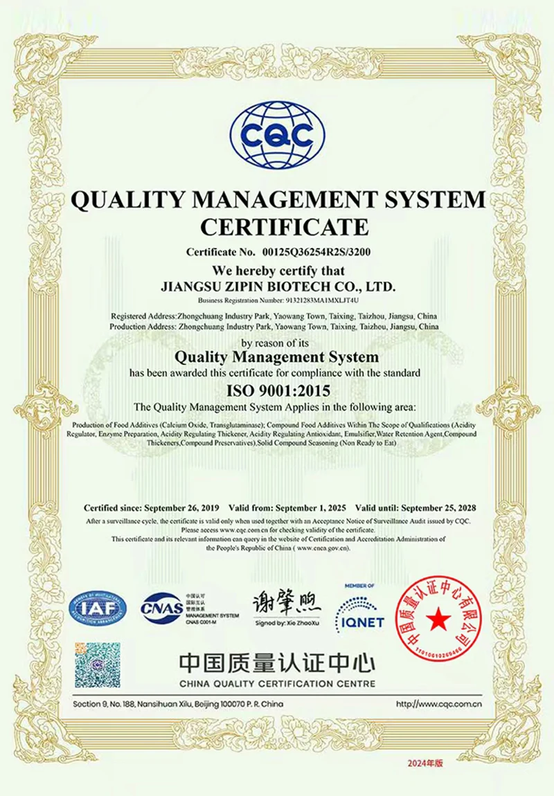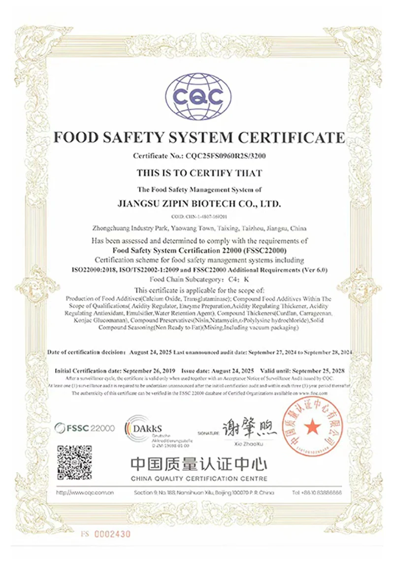 강소 지핀 생명공학 유한회사 2016년에 설립되었으며, 면적은 20,000㎡입니다. 현대 민간 기업으로서 우리는 현재 주로 식품 첨가물의 R&D, 생산 및 판매에 종사하고 있습니다. 우리의 주요 제품은트랜스글루타미나제, 커들란, ε-폴리리신, Nisin, Natamycin 및 기타 식품 첨가물.